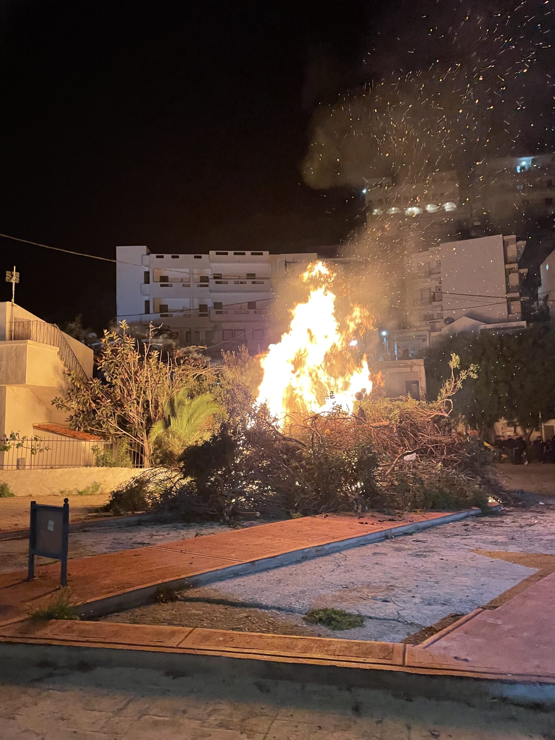 Ich kann das schwer sachlich beschreiben, weil es einfach eine besondere Stimmung ist. Feierlich, warm, lebendig und gleichzeitig ruhig. Genau diese Mischung berührt mich auf Kreta immer wieder. Die Fotos unten zeigen die Kirche in Agia Galini vor dem Gottesdienst, die Osterzeremonie habe ich bewusst nicht fotografiert- sie sind Privatsache für die Bewohner. Auch in Agia Galini gibt es ein Osterfeuer direkt nach dem Gottesdienst, der um Mitternacht endet. Alle haben eine brennende Kerze in der Hand und gehen um die Kirche herum. Sehr feierliche Atmosphäre.